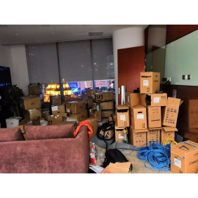 廣州越秀金融大廈某辦公室網(wǎng)絡(luò)覆蓋施工作業(yè),網(wǎng)絡(luò)布線采用康普低煙無鹵的六類非屏蔽雙絞線(CAT-6)。低煙無鹵(Low smoke zero halogen)簡(jiǎn)稱LSZH,是線材中電線護(hù)套的材料分類,低煙無鹵的線材遇到火災(zāi)或明火燃燒受熱時(shí)排煙量低,且本身不含鹵素的熱塑性或是熱固性組成。