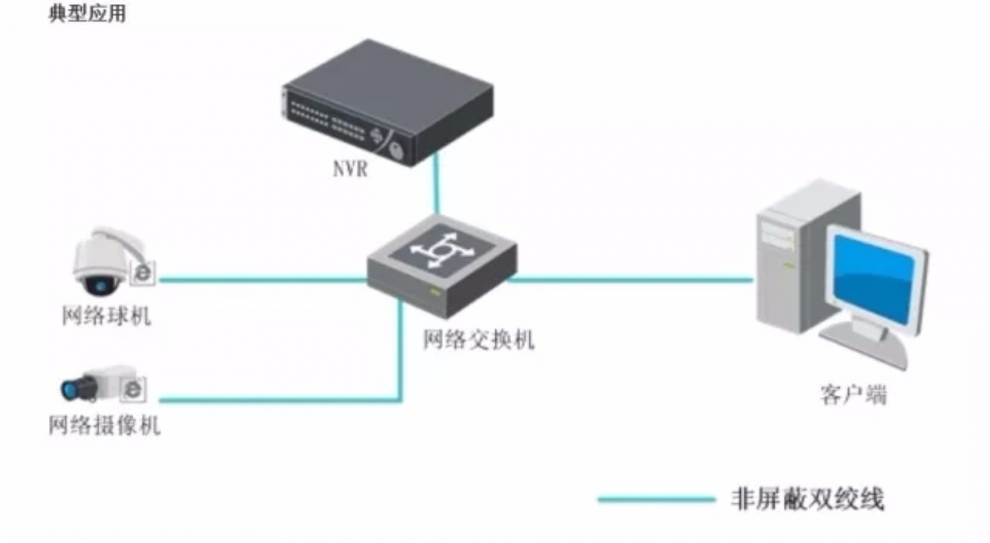 注:這個(gè)典型監(jiān)控連接拓?fù)鋱D清晰的展示了各設(shè)備之間的連接方式,即錄像機(jī)和攝像機(jī)及客戶端通過(guò)網(wǎng)線連接到同一個(gè)交換機(jī)即可。(非網(wǎng)管交換機(jī)各設(shè)備要在同一網(wǎng)絡(luò),同一網(wǎng)段)客戶端安裝APP即可查看監(jiān)控錄像,或者通過(guò)錄像機(jī)用視頻線連接到監(jiān)視器查看監(jiān)控錄像。