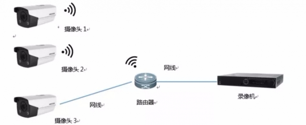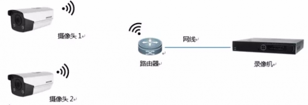 注:錄像機(jī)通過(guò)網(wǎng)線連接到路由器,無(wú)線攝像機(jī)連接到同一個(gè)路由器的WiFi上即可,客戶端安裝APP即可查看監(jiān)控錄像,或者通過(guò)錄像機(jī)用視頻線連接到監(jiān)視器查看監(jiān)控錄像。